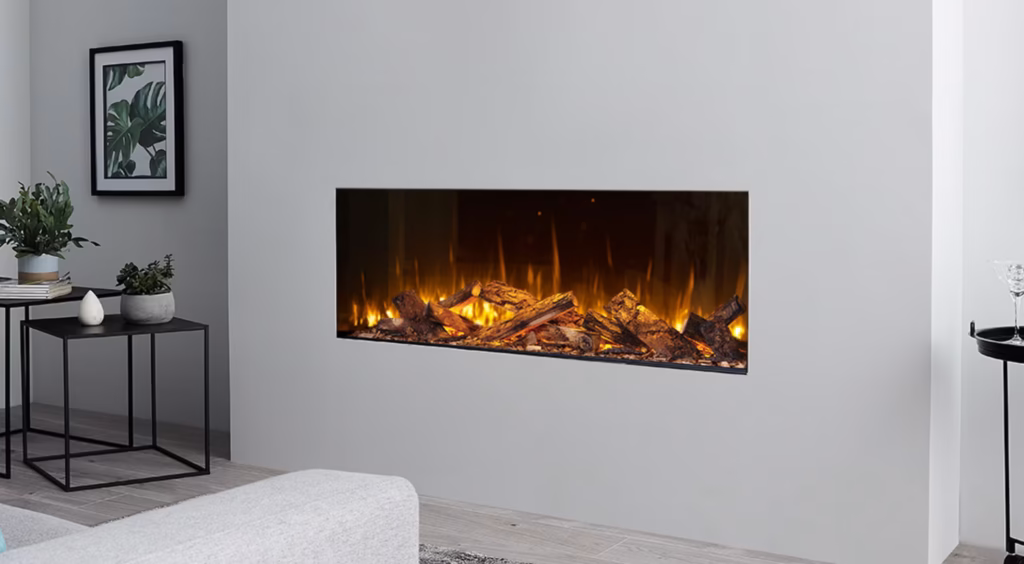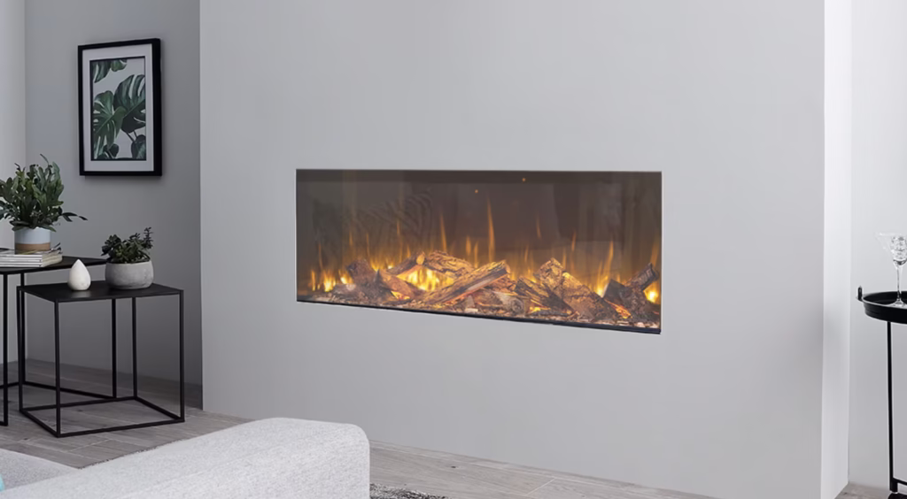 De inbouwhaarden van British Fires zijn uitgerust met bekroonde LED-technologie. Het vlammenspel ontstaat door de subtiele kleurwerking van de achterste vlam, die zich om de houtblokken vormt en zo een natuurgetrouw vuurbeeld neerzet.