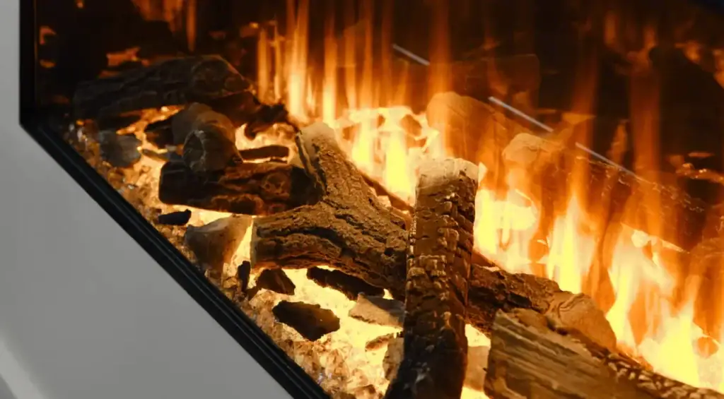 Het donkere achterpaneel vermindert reflecties in de ruimte en verhoogt de intensiteit van het vlambeeld.